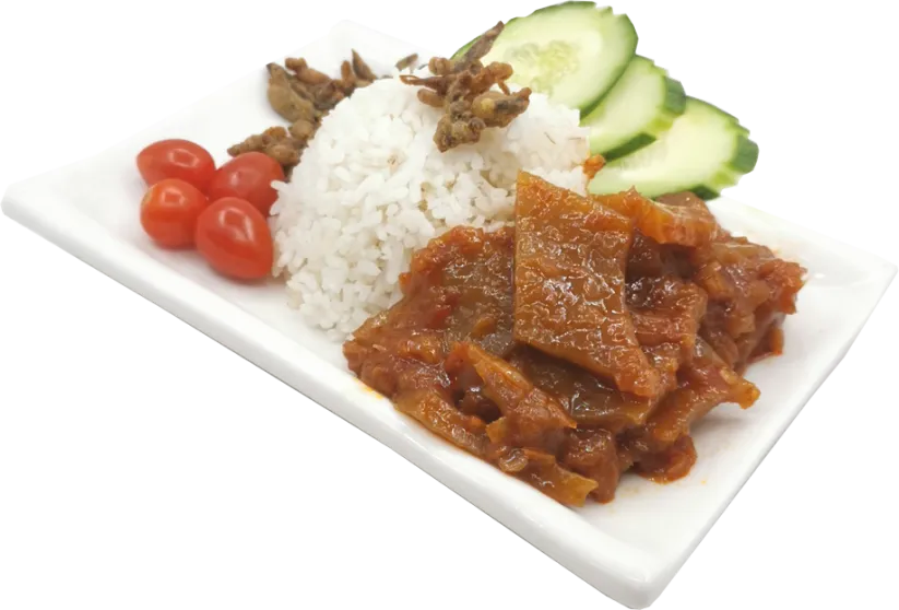 成分 – 水、蔬菜、糖、棕榈油、盐、番茄酱、水解大豆蛋白、 蒟蒻粉 (INS 425) (2.2%)、水解玉米蛋白、修饰淀粉 (INS 1422、1412)、豆瓣酱、干辣椒、酵母提取物、增味剂 (INS 621, 627, 631, 955, 364 (ii))、乳化剂 (INS 471)、木薯淀粉、稳定剂 (INS 1422)、梅子酱、酸度调节剂 (INS 526)、白胡椒粉、抗结剂 (INS 341(iii)), 着色剂 (INS 160c(i))